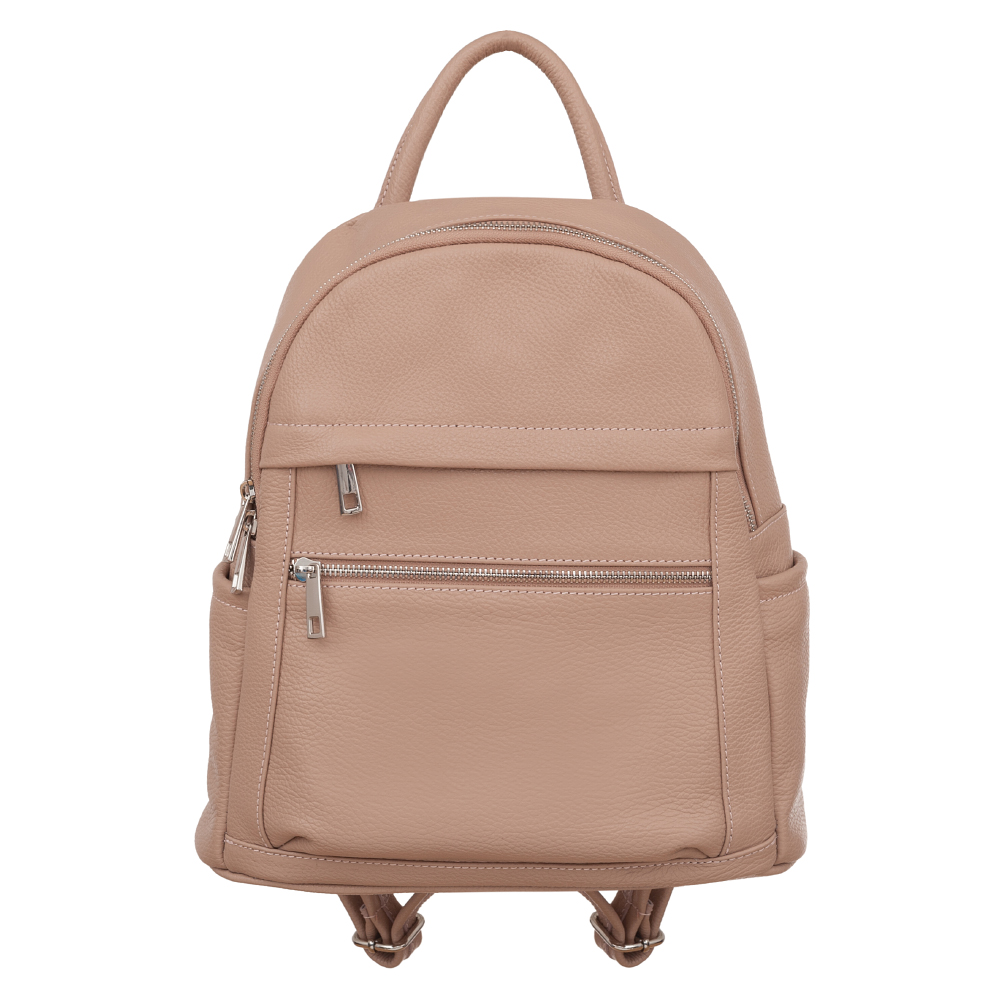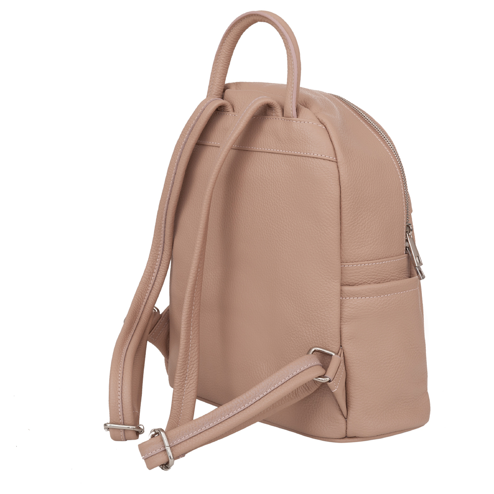 MADE IN ITALY - GENUINE LEATHER. Włoski modny i elegancki skórzany PLECAK torba wykonany w całości z wysokogatunkowej naturalnej miękkiej skóry. Zamykany na zamek. W głównej komorze kieszonka na zamek + dodatkowa kieszonka. Wnętrze wykończone materiałową trwałą podszewką. Dodatkowo 2 x kieszonka z przodu na zamek + kieszonki po bokach. Plecak lekko usztywniony od spodu. Elementy wykończenia w kolorze srebrnym. Uszy z możliwością regulacji długości do 85 cm. Można nosić jako plecak lub w dłoni.