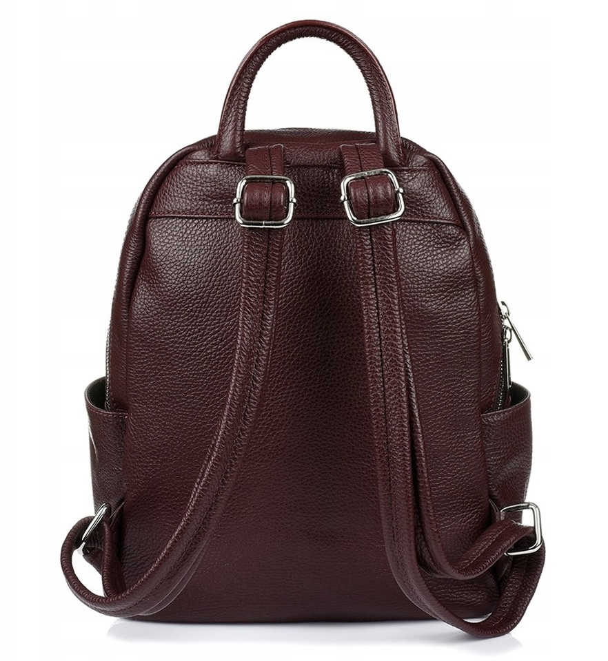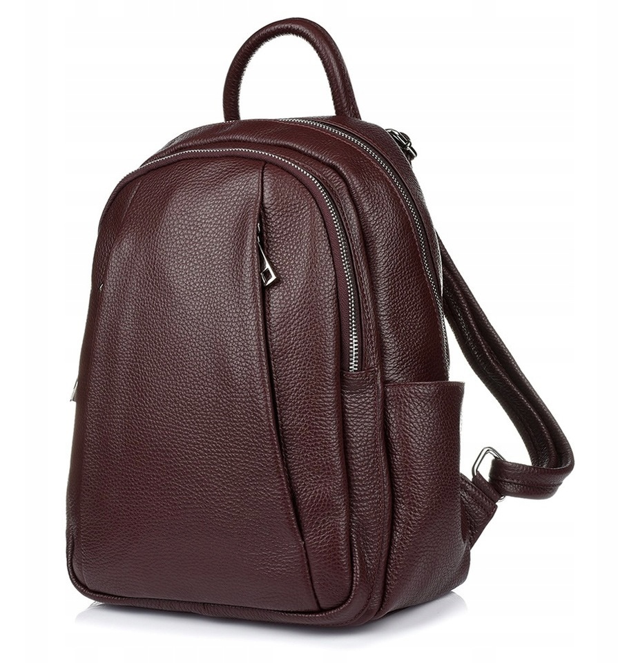 MADE IN ITALY - GENUINE LEATHER. Włoski burgundowy modny i elegancki skórzany PLECAK torba wykonany w całości z wysokogatunkowej naturalnej miękkiej skóry.
