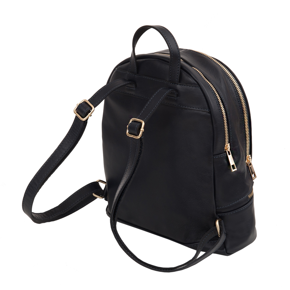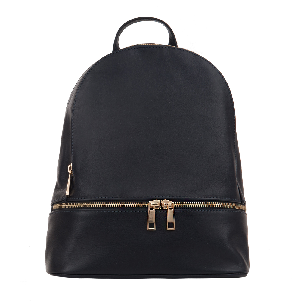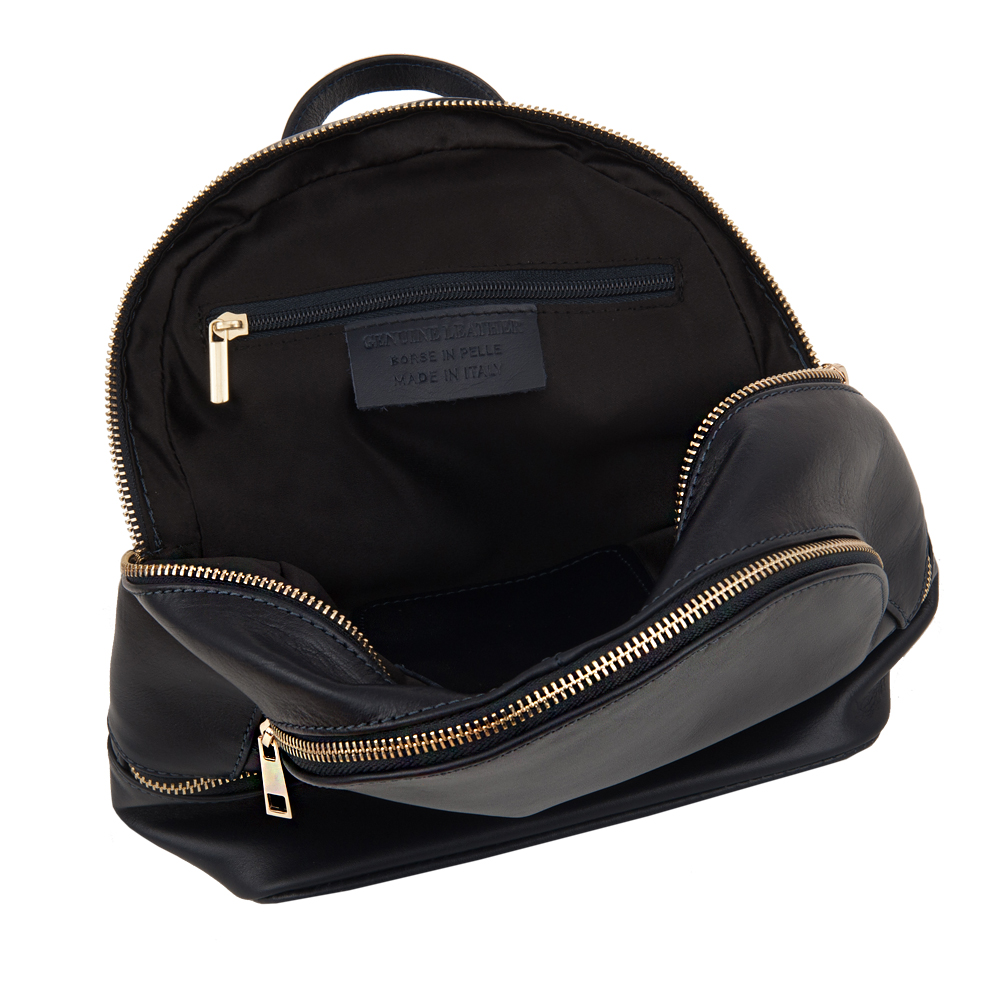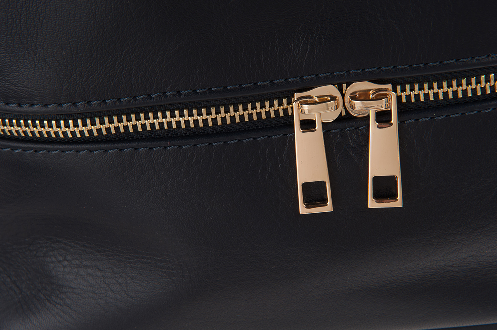 MADE IN ITALY - BORSE IN PELLE. Włoski modny i elegancki skórzany PLECAK torba wykonany w całości z wysokogatunkowej naturalnej, gładkiej miękkiej skóry cielęcej. Zamykany dookoła na zamek. W głównej komorze kieszeń na telefon + kieszonka na zamek. Wnętrze wykończone materiałową trwałą, czarną podszewką. Dodatkowo jedna mniejsza komora + kieszonka pozioma z przodu. Plecak lekko usztywniony od spodu. Elementy wykończenia w kolorze złotym. Uszy z możliwością regulacji długości 47-86 cm. Można nosić jako plecak lub w dłoni.