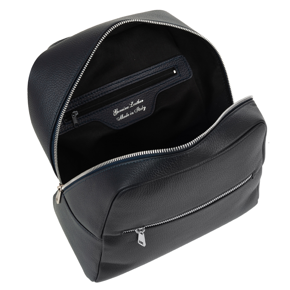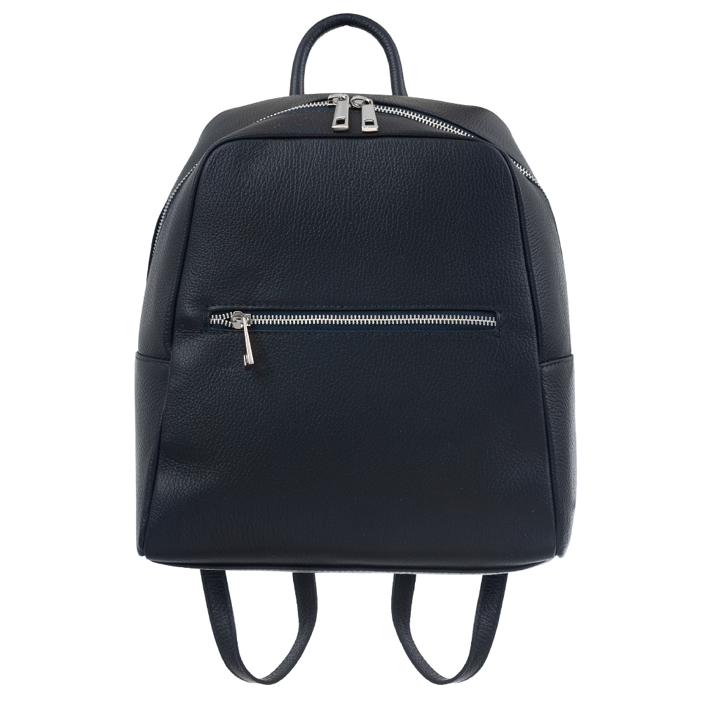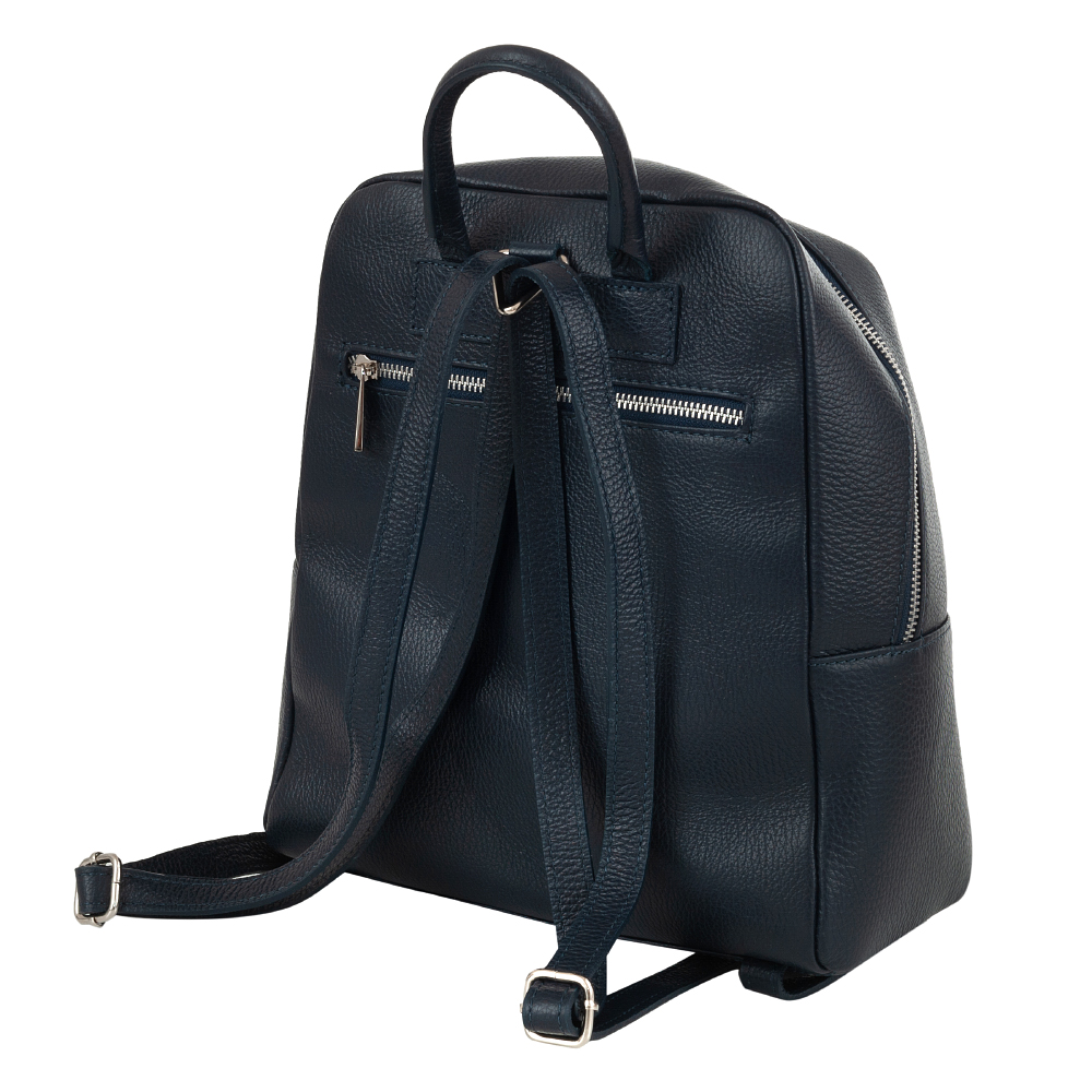 MADE IN ITALY - GENUINE LEATHER. Włoski modny i elegancki skórzany PLECAK torba wykonany w całości z wysokogatunkowej naturalnej, miękkiej skóry. Zamykany na zamek. W głównej komorze kieszeń na telefon + kieszonka na zamek + dodatkowa kieszonka. Wnętrze wykończone materiałową trwałą, czarną podszewką. Dodatkowo jedna kieszonka pozioma z przodu i z tyłu. Plecak lekko usztywniony od spodu. Elementy wykończenia w kolorze srebrnym. Uszy z możliwością regulacji długości 52-110 cm. Można nosić jako plecak lub w dłoni.