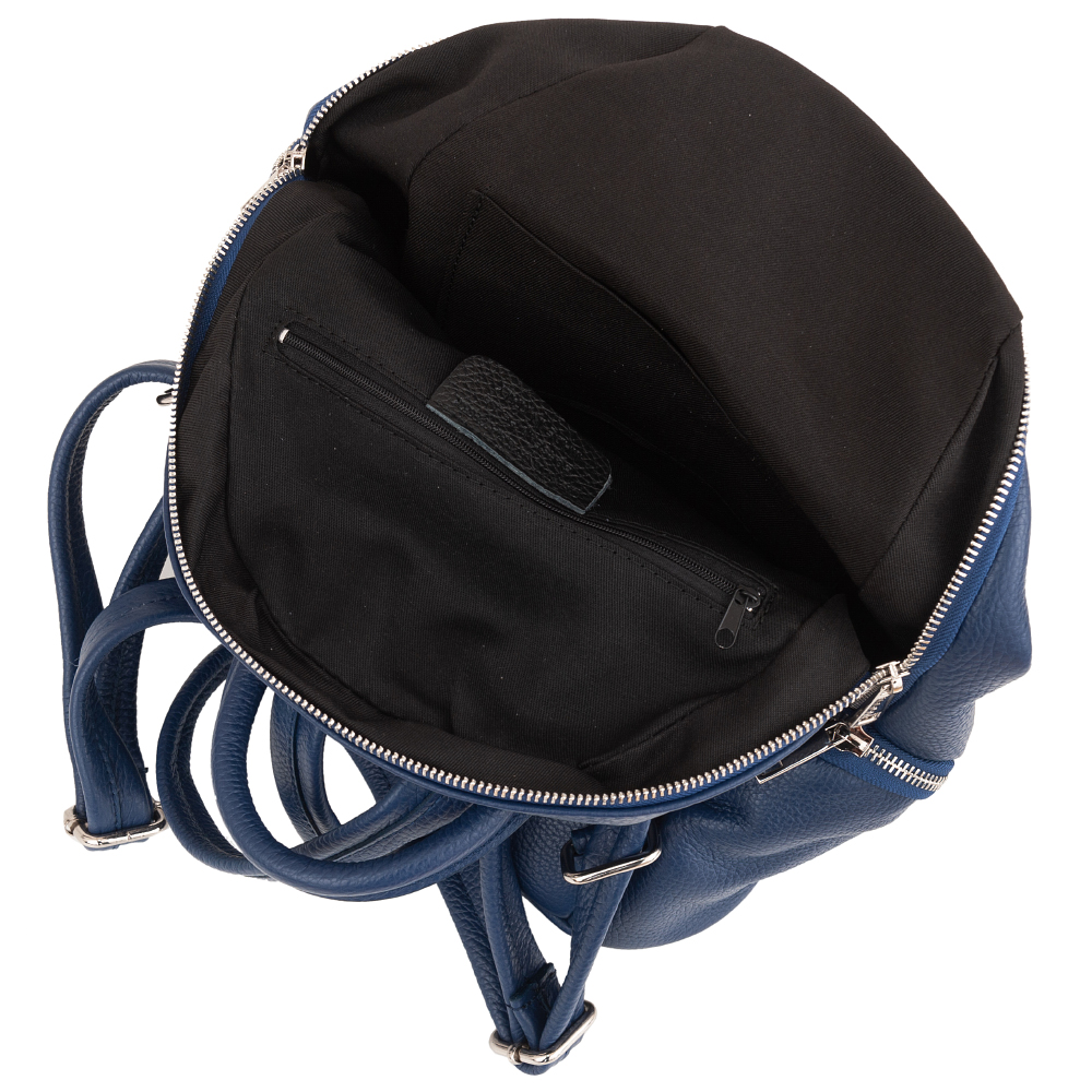 MADE IN ITALY - GENUINE LEATHER. Włoski modny i elegancki skórzany PLECAK torba wykonany w całości z wysokogatunkowej naturalnej, miękkiej skóry. Zamykany na zamek. W głównej komorze kieszonka na zamek + dodatkowa kieszonka. Wnętrze wykończone materiałową trwałą, czarną podszewką. Dodatkowo 2 x kieszonka z przodu na zamek + kieszonki po bokach. Plecak lekko usztywniony od spodu. Elementy wykończenia w kolorze srebrnym. Uszy z możliwością regulacji długości do 85 cm. Można nosić jako plecak lub w dłoni.