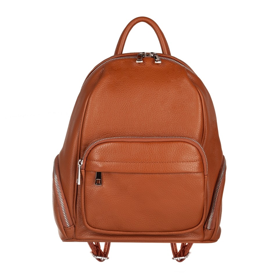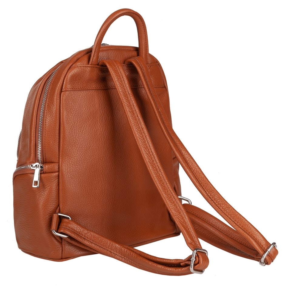 MADE IN ITALY - GENUINE LEATHER. Włoski modny i elegancki skórzany PLECAK torba wykonany w całości z wysokogatunkowej naturalnej, miękkiej skóry. Zamykany na zamek. W głównej komorze kieszonka na zamek + dodatkowa kieszonka. Wnętrze wykończone materiałową trwałą, czarną podszewką. Dodatkowo 2 x kieszonka z przodu na zamek + kieszonki po bokach. Plecak lekko usztywniony od spodu. Elementy wykończenia w kolorze srebrnym. Uszy z możliwością regulacji długości do 85 cm. Można nosić jako plecak lub w dłoni.