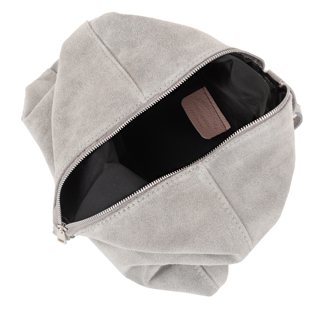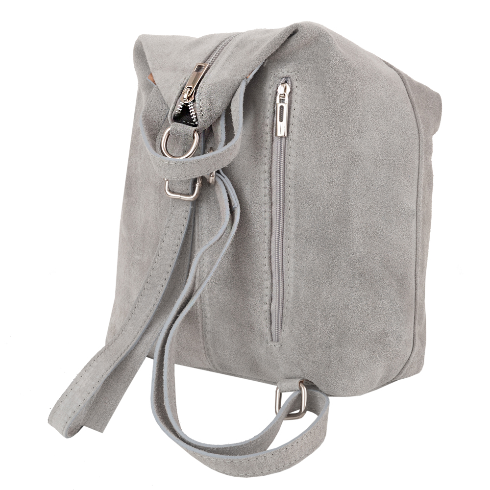 Vera Pelle Włoska skórzana torebka plecak wykonana w 100% z naturalnej miękkiej skóry zamszowej. Zamykana na zamek. Plecak jednokomorowy, wewnątrz jedna kieszonka na zamek, jedna na telefon. Dodatkowo z tyłu kieszonka na zamek. Wnętrze wykończone trwałą, materiałową czarną podszewką. Uszy regulowane na długość 46 - 92 cm, możliwość noszenia plecaka w ręce. Metalowe elementy w kolorze starego złota!