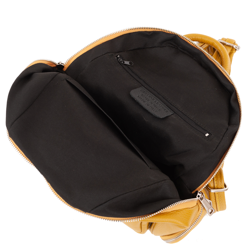 MADE IN ITALY - GENUINE LEATHER. Włoski modny i elegancki skórzany PLECAK torba wykonany w całości z wysokogatunkowej naturalnej, miękkiej skóry. Zamykany na zamek. W głównej komorze kieszonka na zamek + dodatkowa kieszonka. Wnętrze wykończone materiałową trwałą, czarną podszewką. Dodatkowo 2 x kieszonka z przodu na zamek + kieszonki po bokach. Plecak lekko usztywniony od spodu. Elementy wykończenia w kolorze srebrnym. Uszy z możliwością regulacji długości do 85 cm. Można nosić jako plecak lub w dłoni.