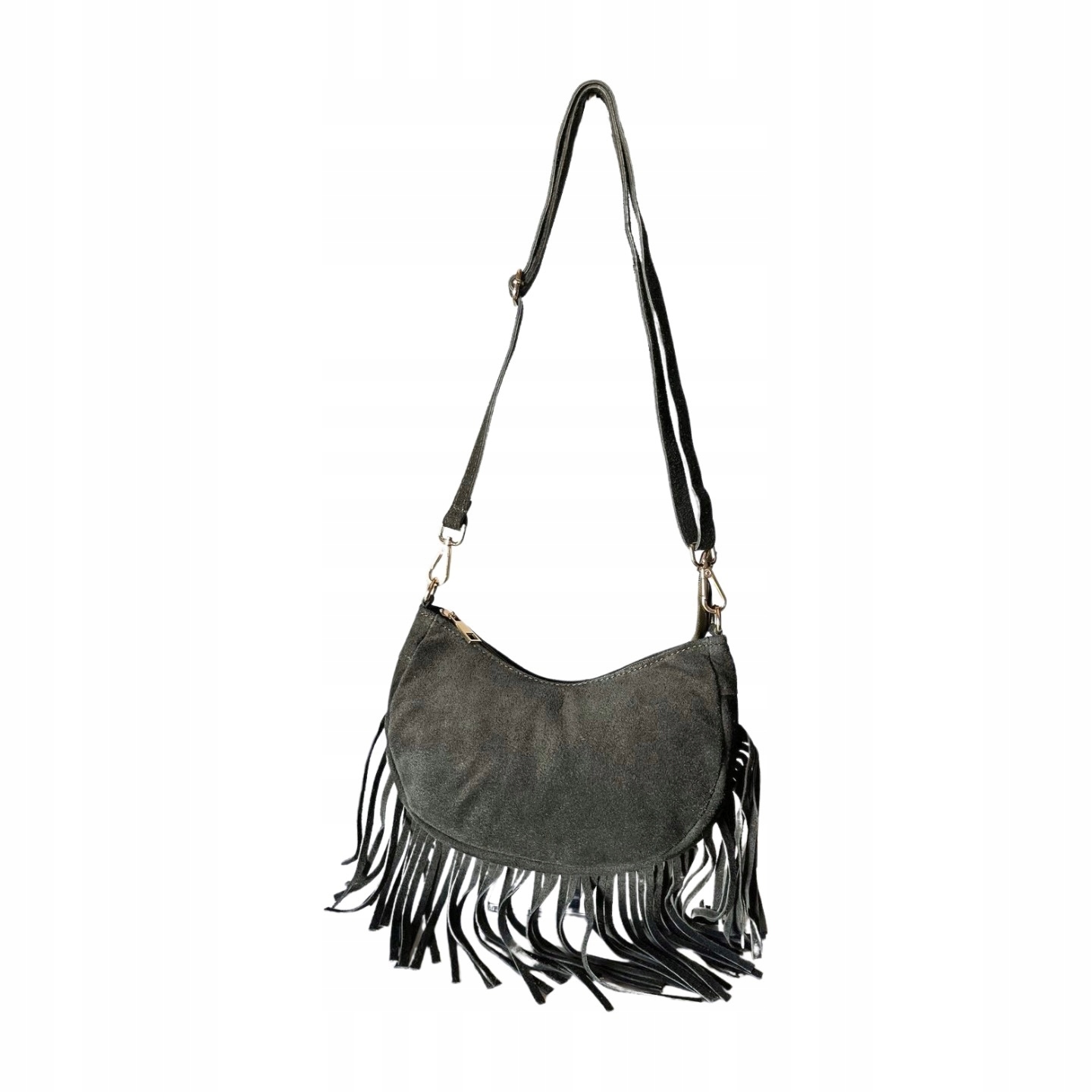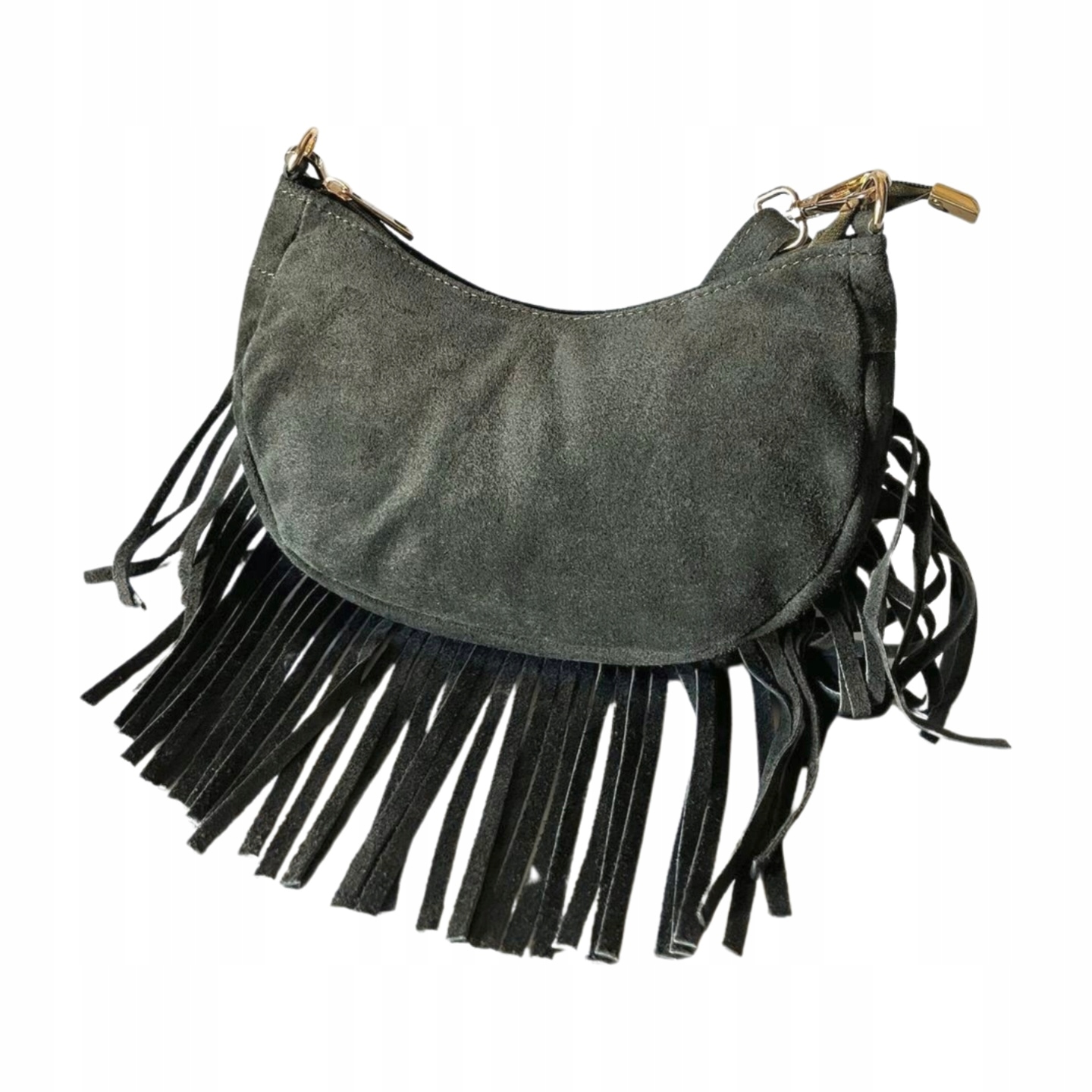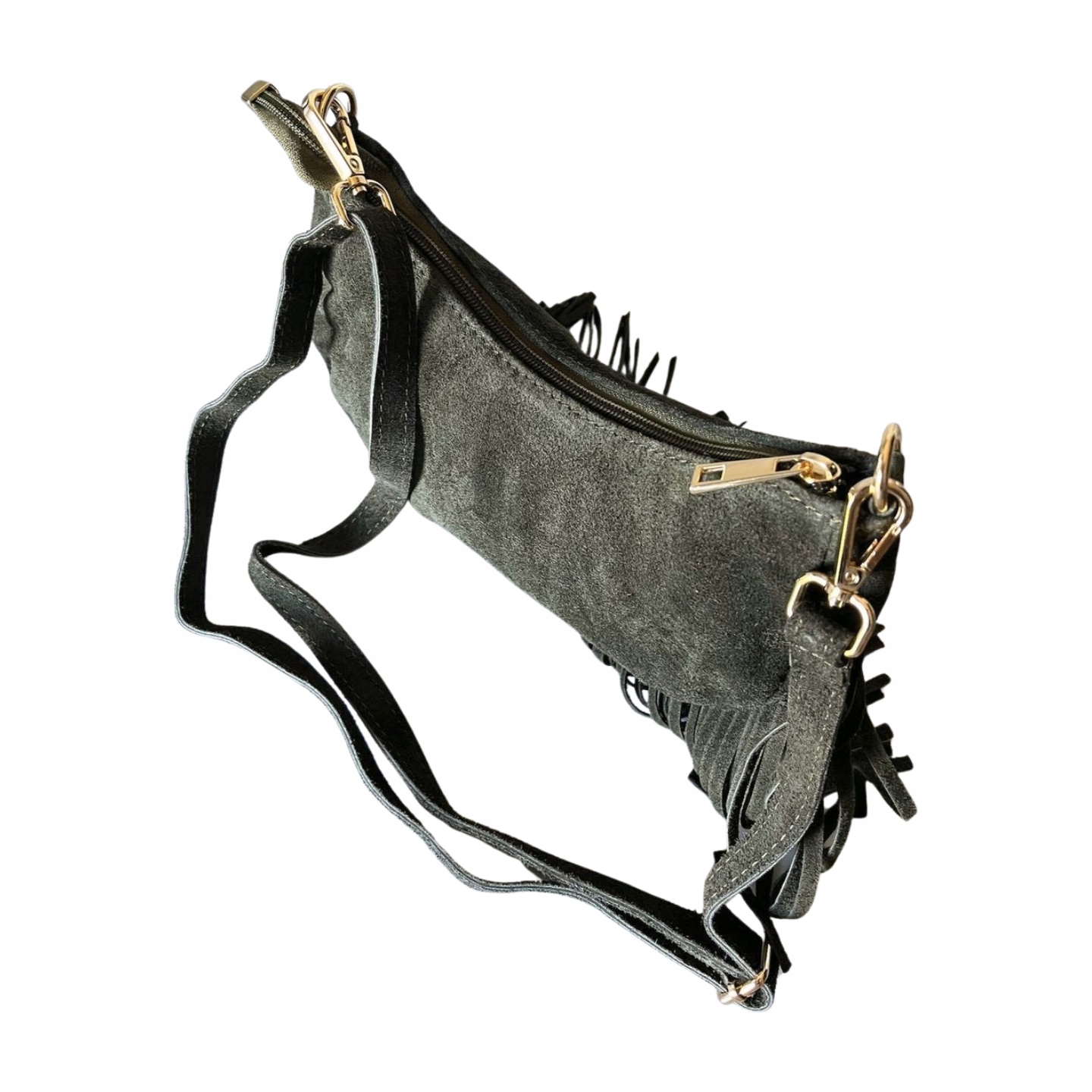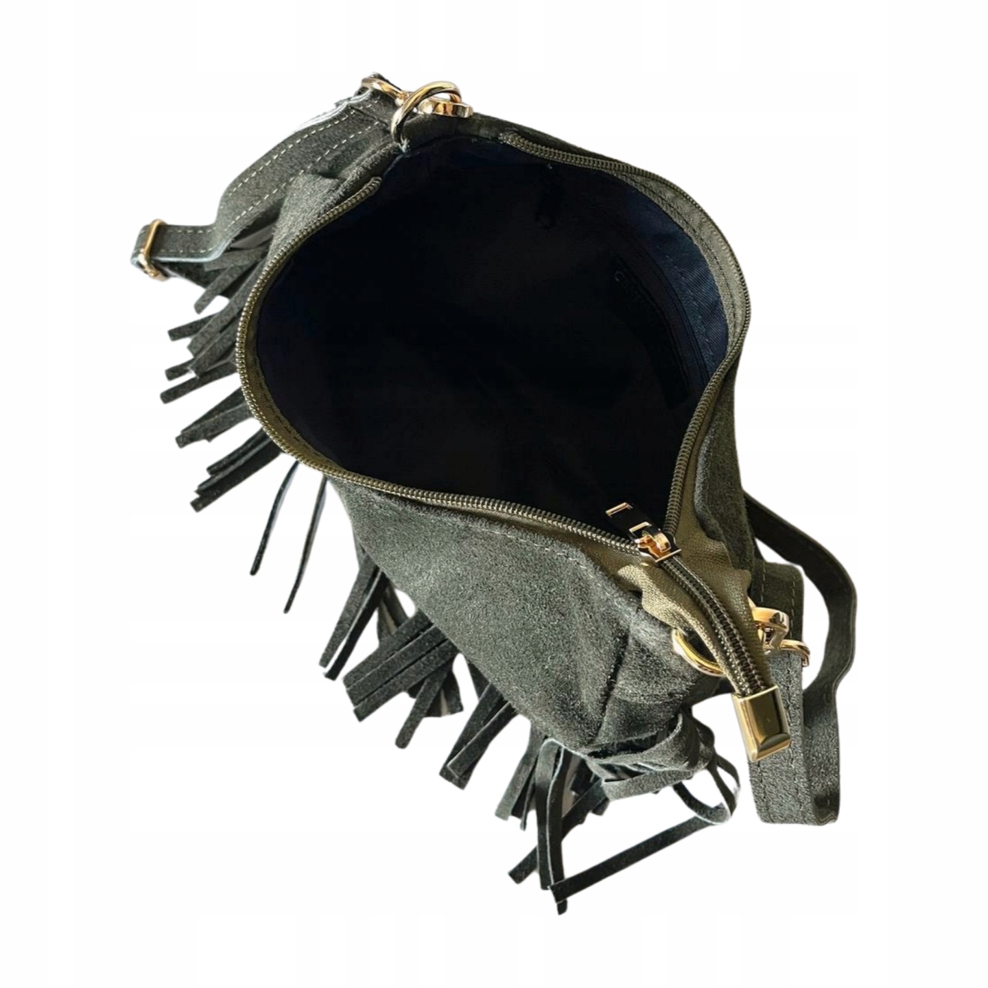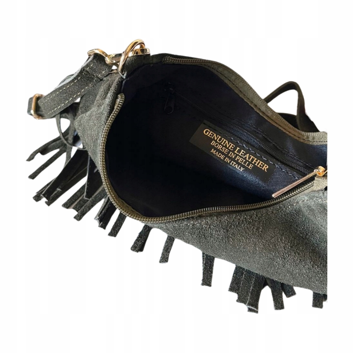 Vera Pelle - Włoska zielona skórzana torebka listonoszka wykonana z wysokogatunkowej naturalnej skóry zamszowej.