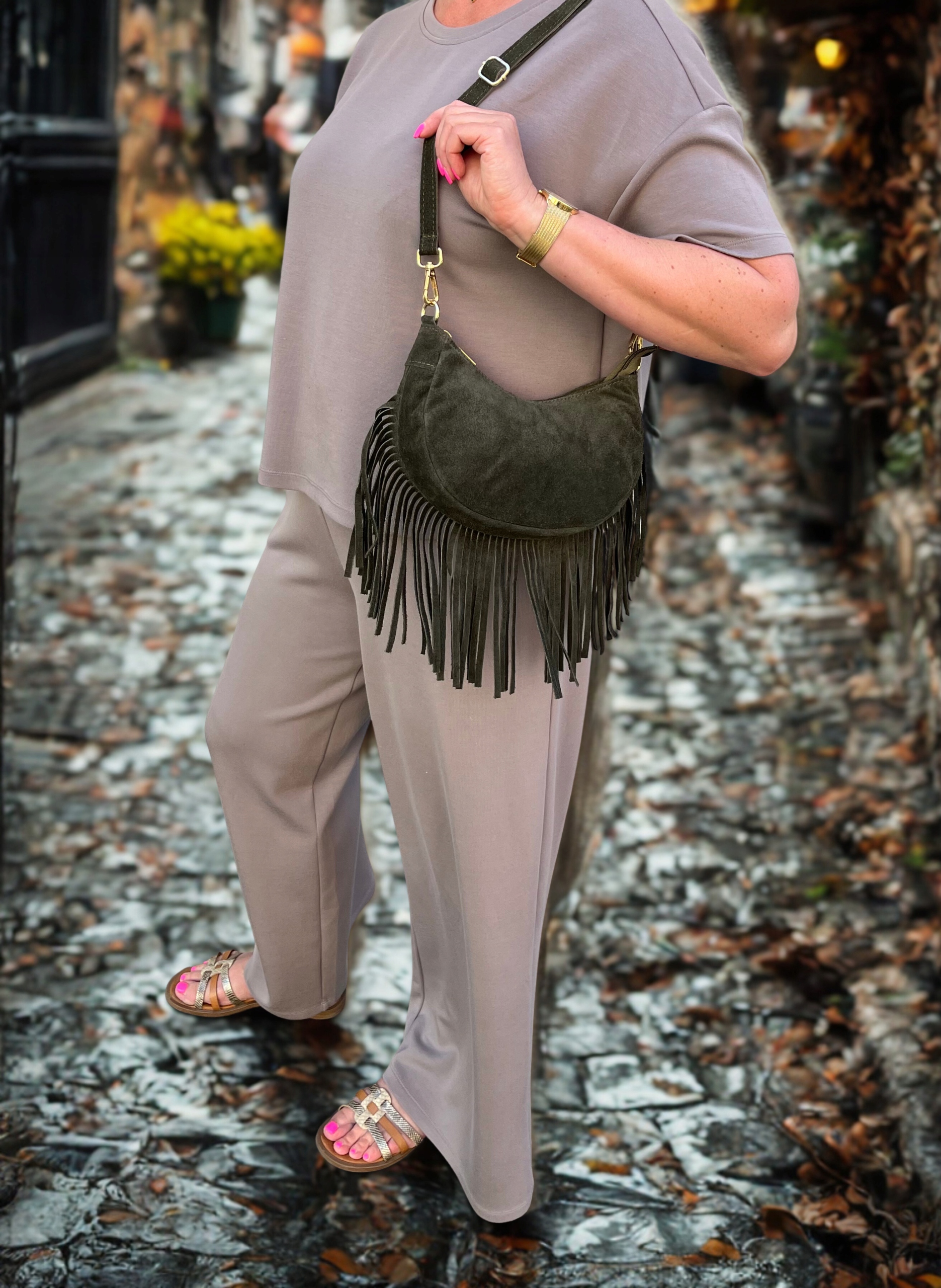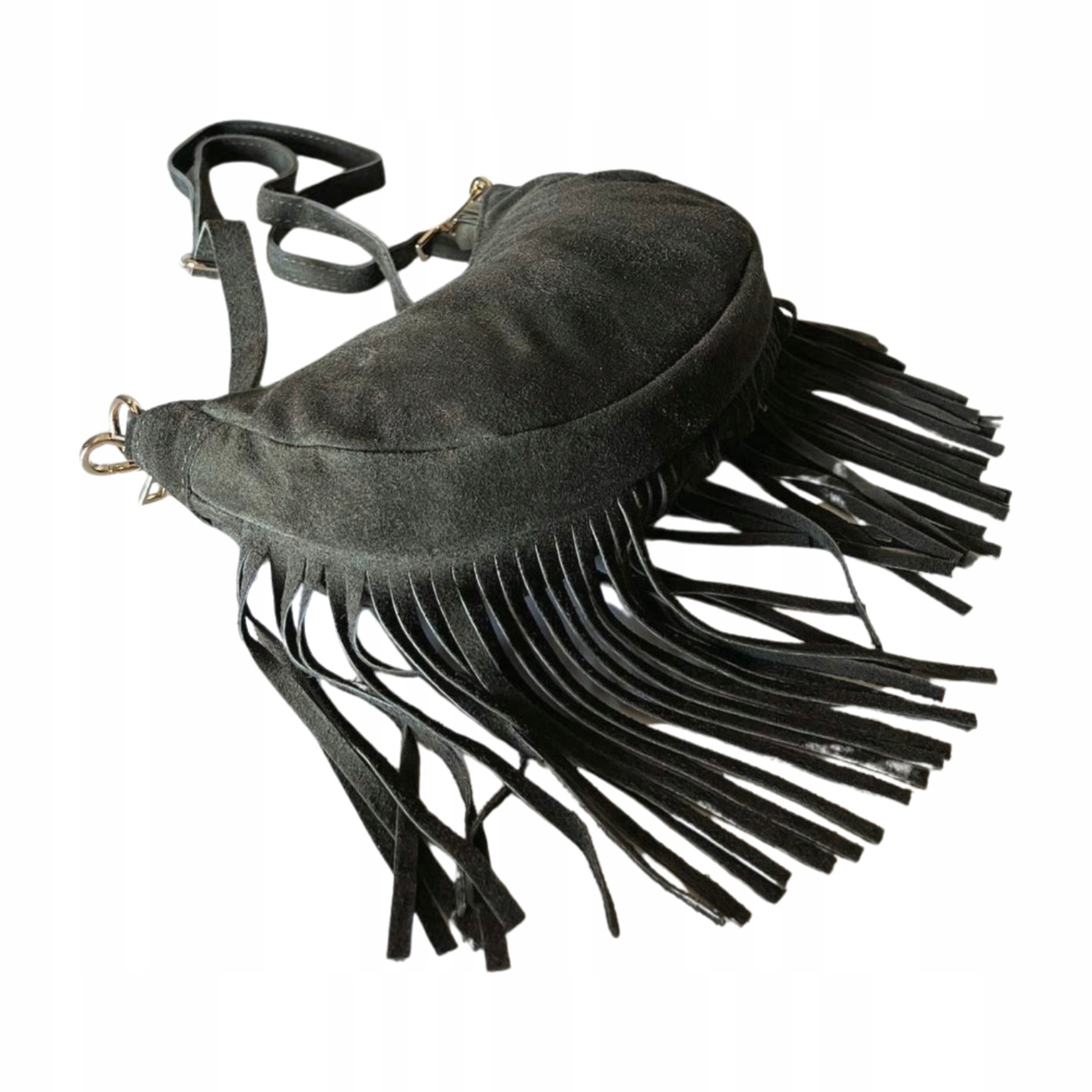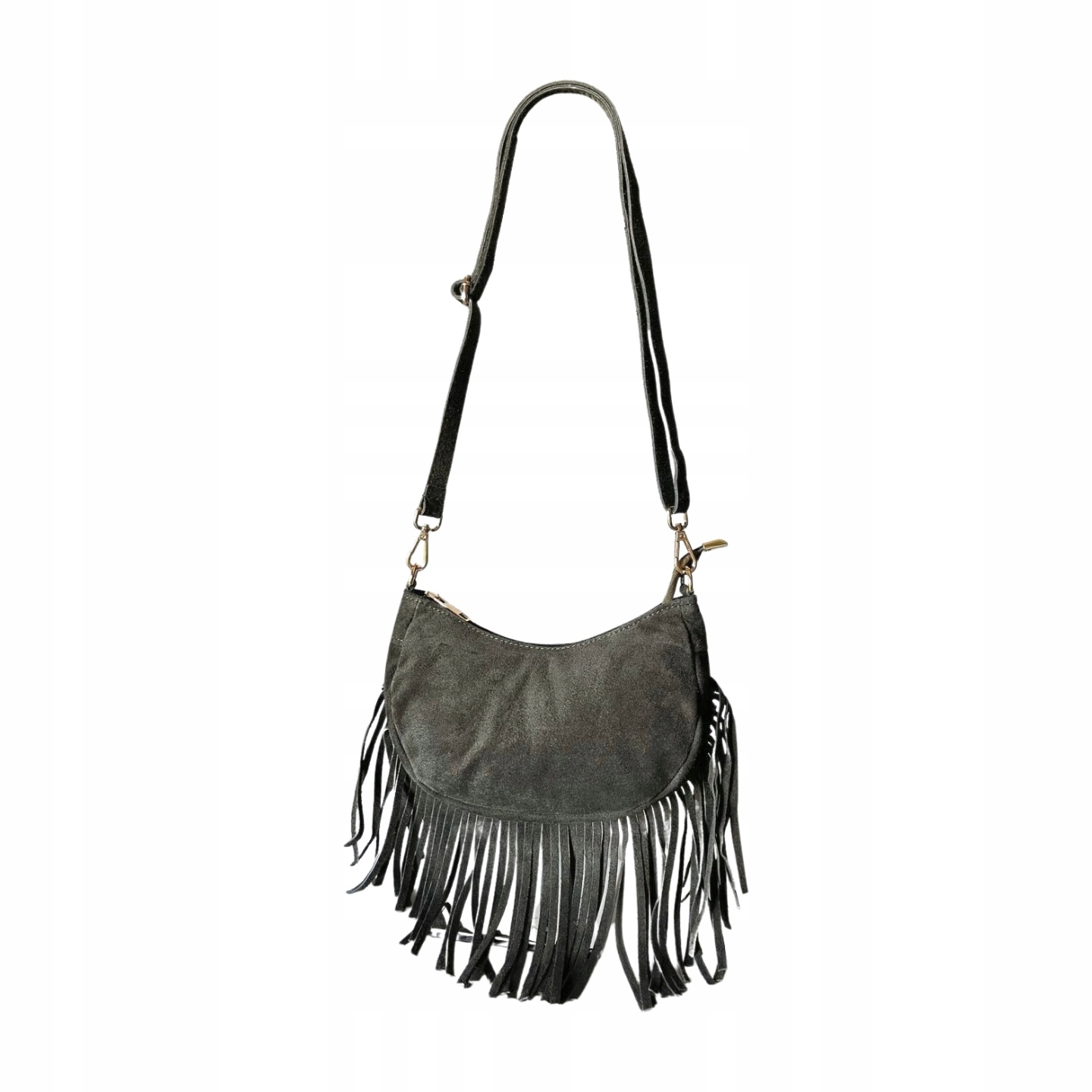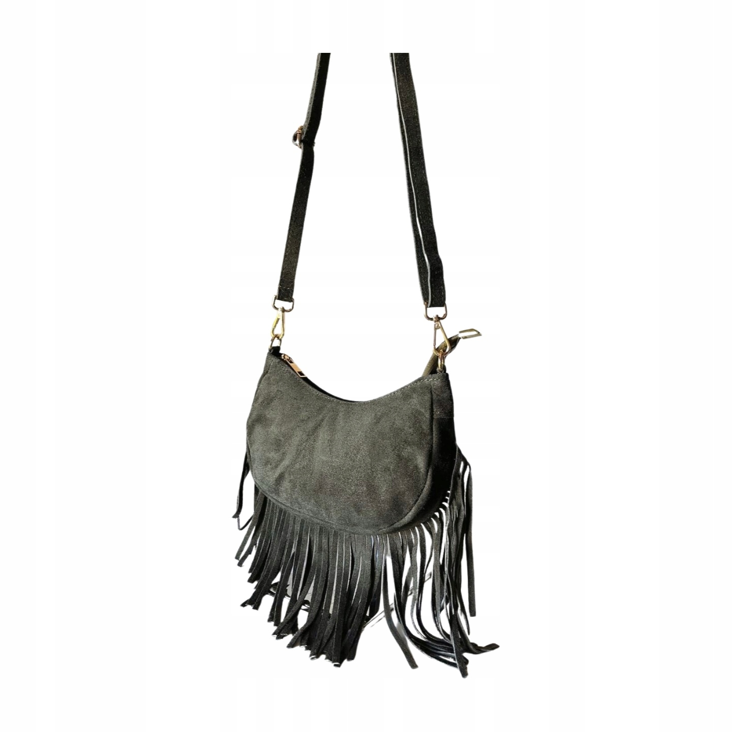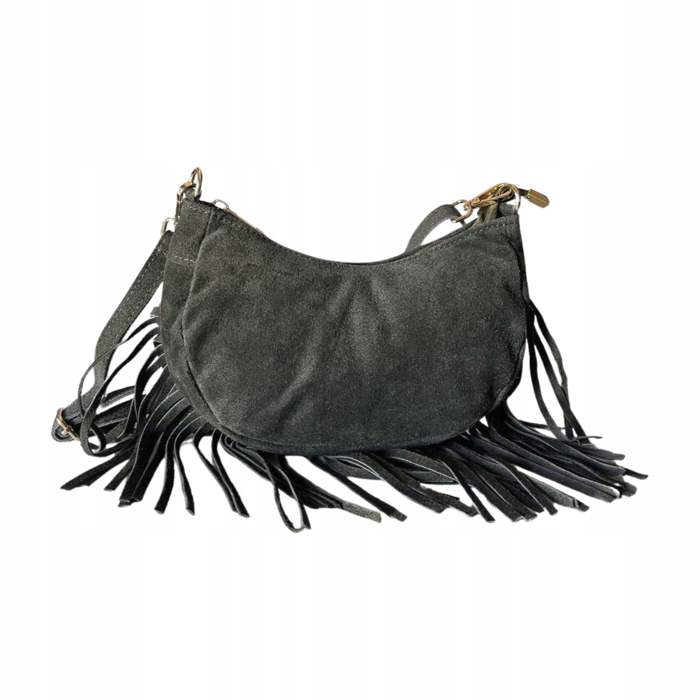 Vera Pelle - Włoska zielona skórzana torebka listonoszka wykonana z wysokogatunkowej naturalnej skóry zamszowej.