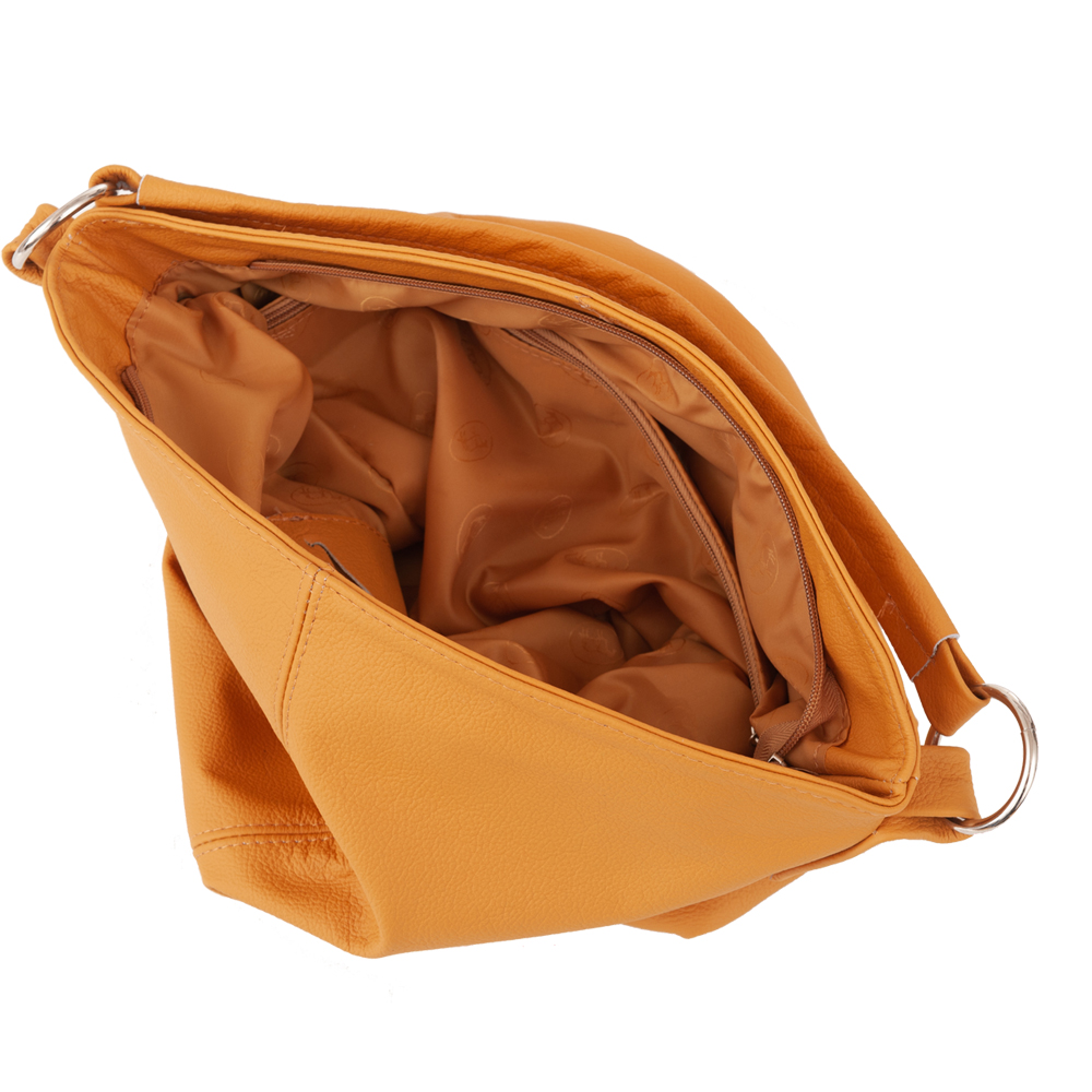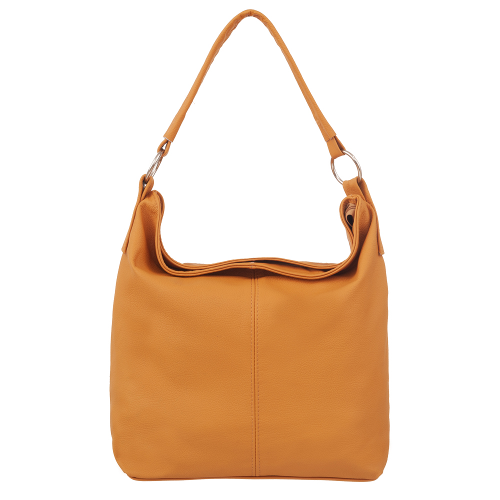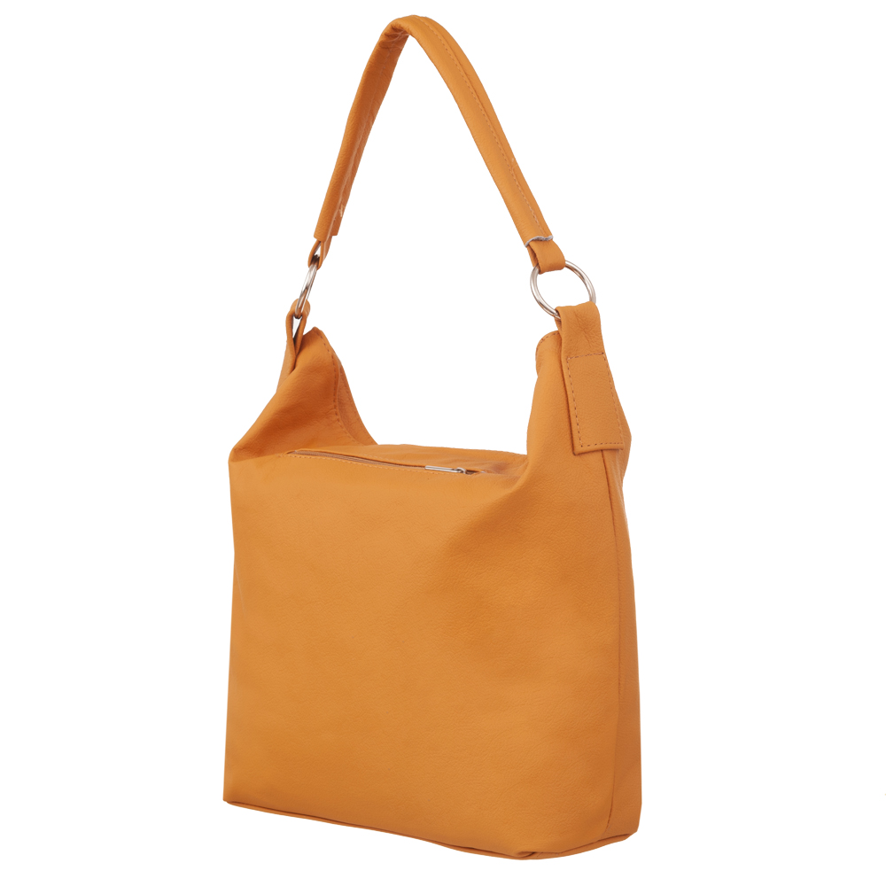 Skórzana, miękka A4 torebka wykonana w całości ze skóry naturalnej licowej. Zamykana z góry na suwak. Torebka dwukomorowa przedzielona na środku dużą kieszenią na zamek. Wewnątrz jedna kieszonka na zamek oraz jedna na telefon. Dodatkowo z tyłu kieszonka na suwak. Wnętrze wykończone trwałą, materiałową podszewką. Dodatkowy pasek z możliwością regulacji długości od 65 cm do 130 cm. Metalowe elementy w kolorze srebrnym. Dno torebki usztywnione.